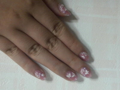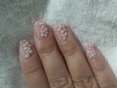 この白い蝶々とお花はシールなのでお母さんの爪にやってあげたお花のように